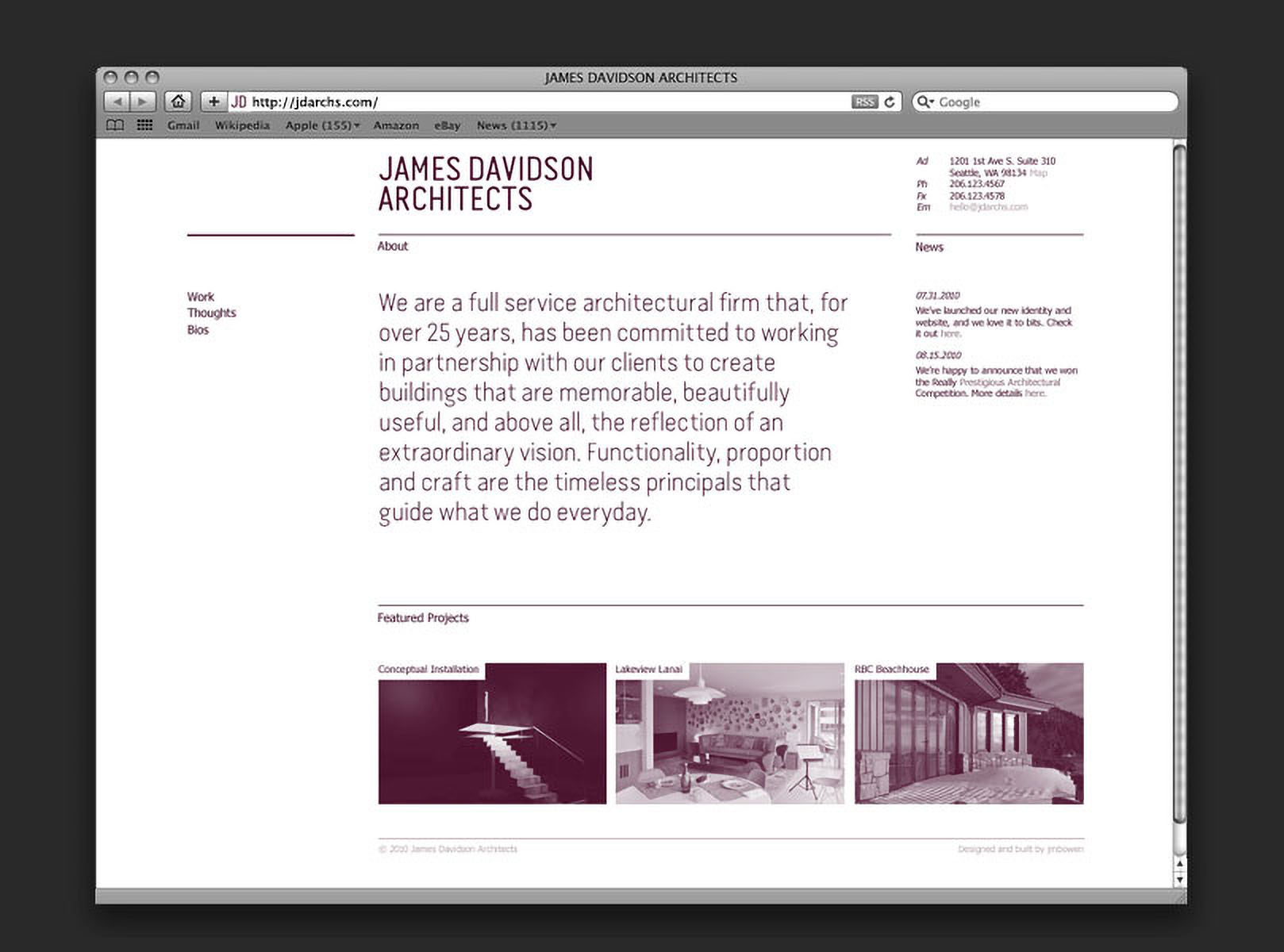 The portfolio of this small Seattle architectural firm required a unique approch—much of their work has been for prestigious clients, but done under strict non-disclosure agreements. In this rebrand and website design, emphasis was placed on the scale, complexity and range of work accomplished by the firm.